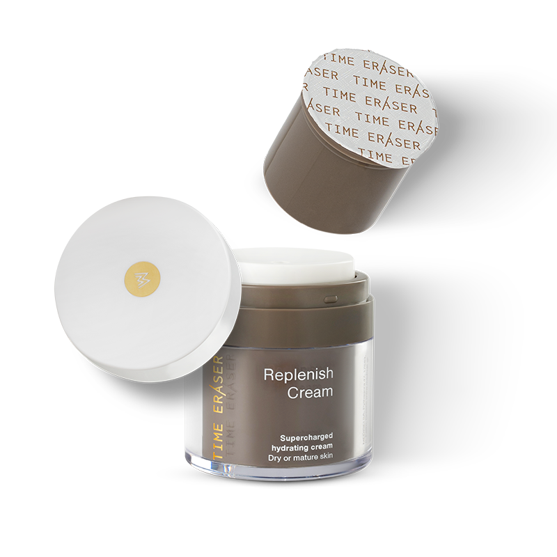 Time Eraser Replenish Cream significantly improves facial contour, smooths deep wrinkles and fine lines and helps the restructure of collagen, thanks to TIMECODE™, a biomimetic lipid that carries the decoding mechanism of the aging process. Rich anti-wrinkle and enhanced 48-hour hydrating cream that strengthens the skin’s barrier and promotes elasticity while offering antioxidant protection against free radicals.